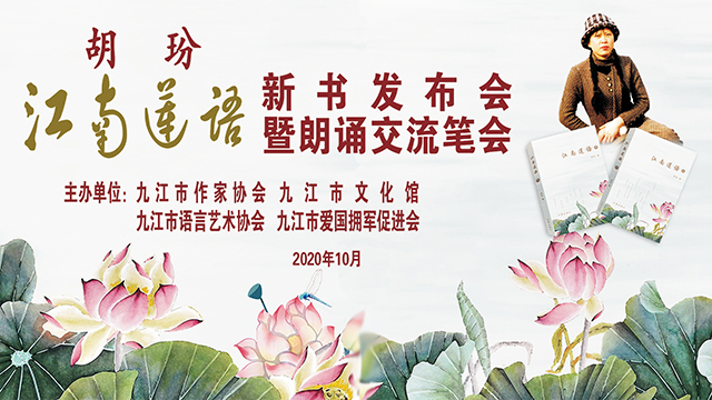 10月10日上午10點(diǎn),由九江市作家協(xié)會(huì)、九江市文化館、九江市語(yǔ)言藝術(shù)協(xié)會(huì)、九江市愛(ài)國(guó)擁軍促進(jìn)會(huì)聯(lián)合主辦的胡玢《江南蓮語(yǔ)》新書(shū)發(fā)布會(huì)暨朗誦交流筆會(huì)在濂溪區(qū)美術(shù)館舉行。該書(shū)由中國(guó)作家出版社出版,人民日?qǐng)?bào)社高級(jí)編審、中國(guó)散文學(xué)會(huì)名譽(yù)會(huì)長(zhǎng)、中國(guó)詩(shī)歌學(xué)會(huì)理事、著名詩(shī)人、散文家、國(guó)家特殊貢獻(xiàn)專(zhuān)家石英老師作序。